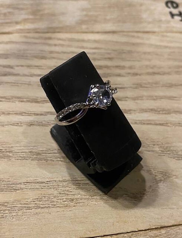 Elegante dames twisted ring verzilverd met 1 grote zirconia en diverse kleine zirconia's diverse maten