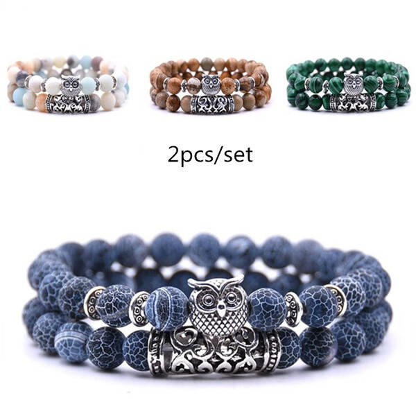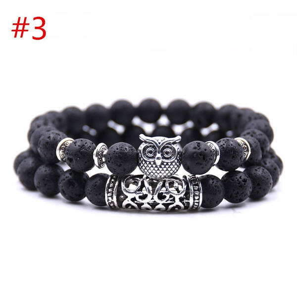 2 stks / set Paar Tijgeroog Steen Armbanden Armbanden Klassieke Zwart Wit Natuurlijke Lava Stenen Charm Bead Armband Vrouwen Mannen